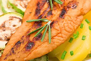 7. Sobald sich die Haut der Rotfedern goldgelb und das Fleisch weiß färbt, sind die