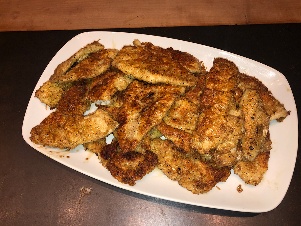 8. Die Fische auf etwas Küchenpapier abtropfen lassen und z.B. mit Petersilienkartoffeln
